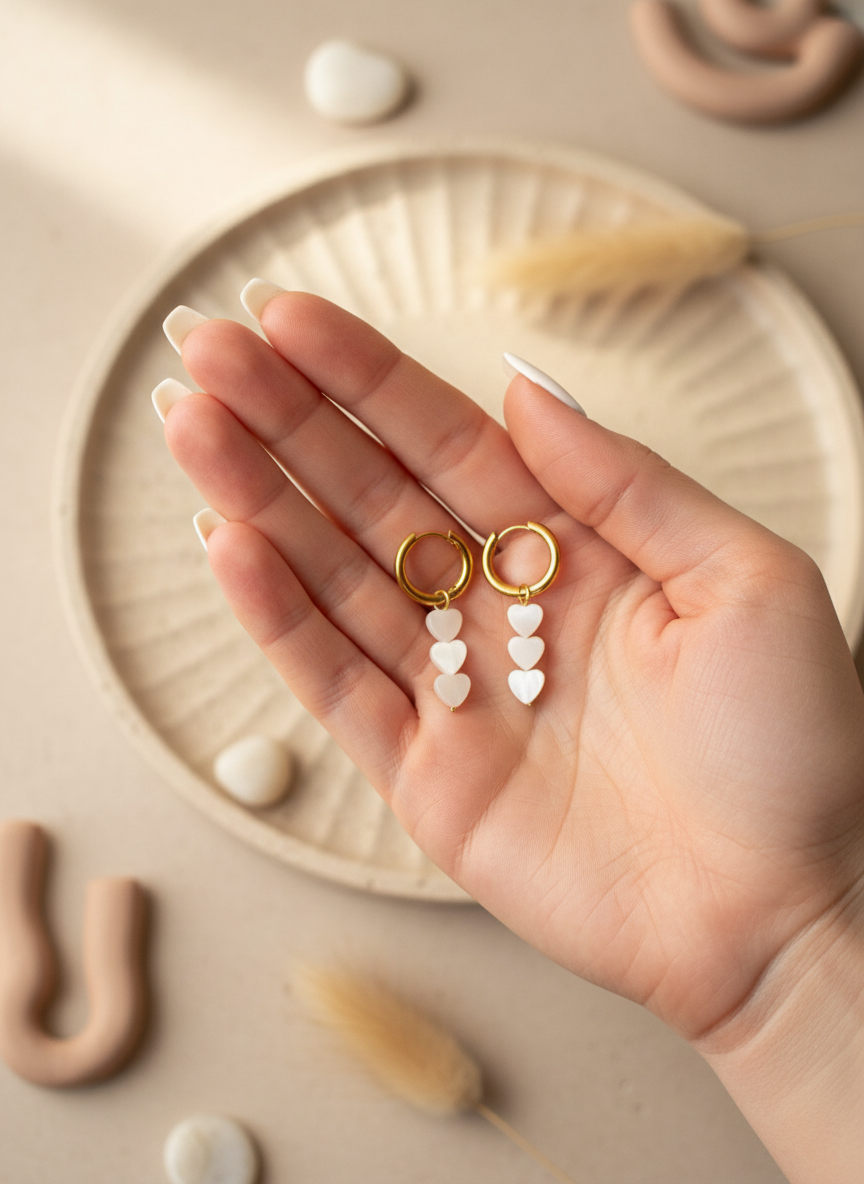 Fabricados en acero inoxidable hipoalergenico y corazones de madre perla tallados a mano