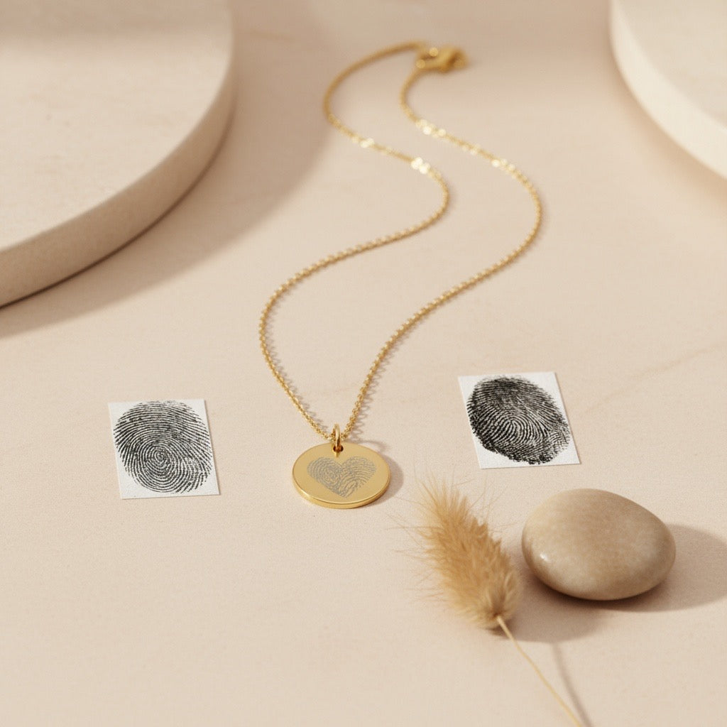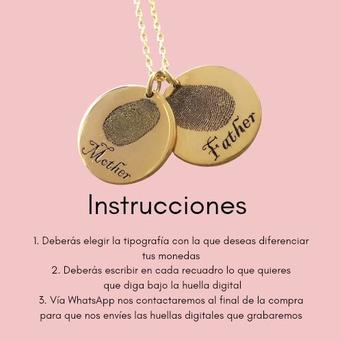 Lo personalizamos con las huellas digitales de tus dos seres queridos favoritos y abajo les ponemos una palabra especial.