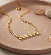 Pequeña barrita de acero inoxidable en el cual puedes grabar aquella fecha, nombre o coordenada importante para ti que podrás tener cerca de tu corazón.
