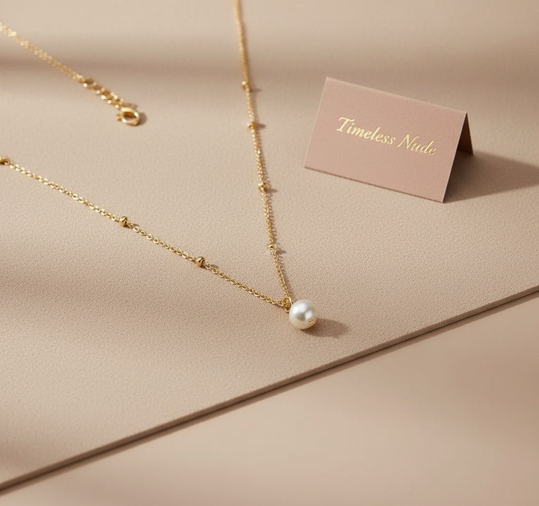 Esta fabricado en una fina cadena de bolitas conocida como "Cadena de Municiones" de Rodio con 3 micras de oro (18k), la perla es una delicia visual por ser natural y Barroca.