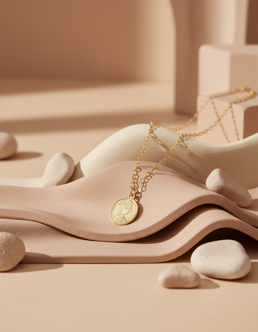 Cadena y dije bañados en oro de 18k a 46 cm de largo.