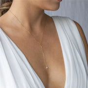 Hermoso collar corbatero que remata con una perla en forma de gota, un indispensable para lucir tu mejor escote.