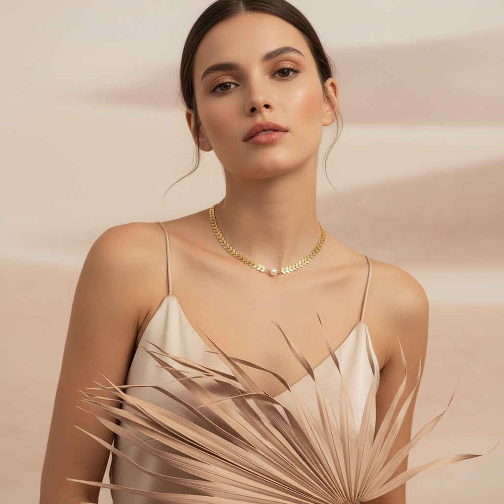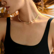 Impactante chocker en diseño, majestuosidad y detalle. El brillo de la cadena de espiga o flechas lo hace resaltar y el detalle de pureza de la perla lo hacen notorio a la vista.