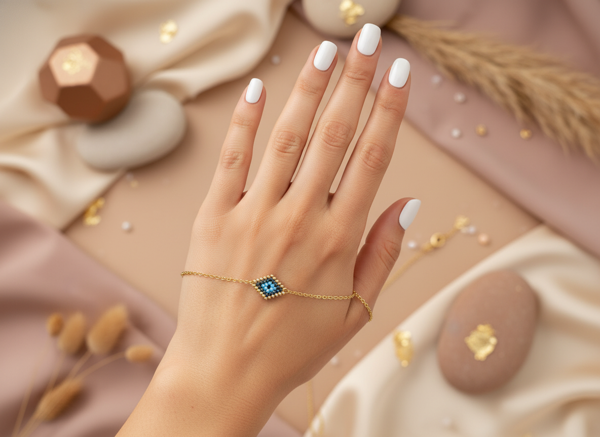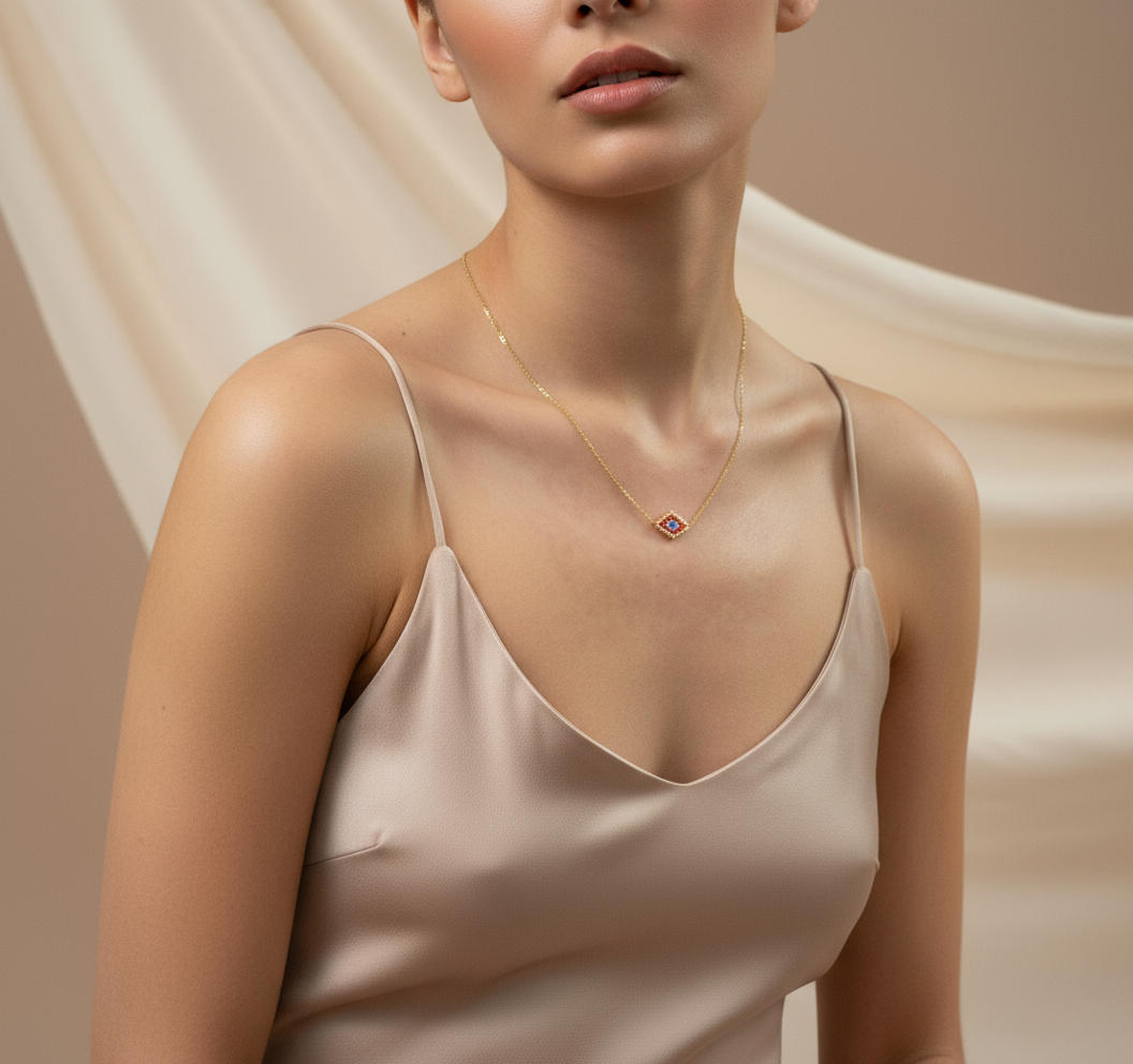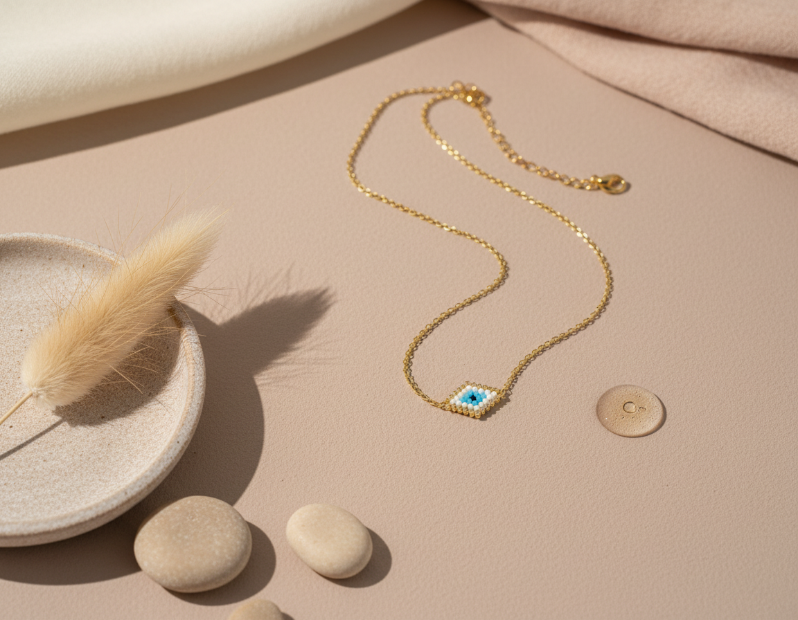 El ojo turco u ojo griego es tu talisman de proteccion contra las influencias negativas, nuestro collar y dije esta artesanalmente tejido con cristal japonés "MIYUKI". Elaborado en cadena dorada de acero inoxidable.