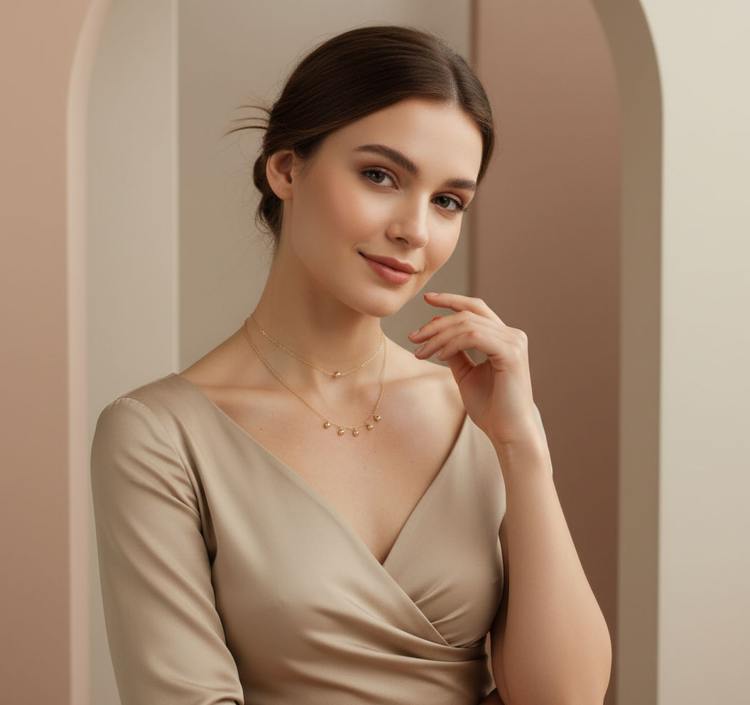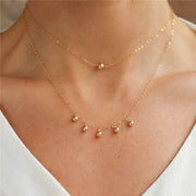 Cadena de acero inoxidable y bolitas de 2 mm bañadas en oro de 14k