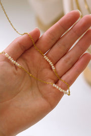 Las perlas lucen hermosas en las manos pero mucho más en el cuello, este collar es el complemento ideal de nuestra pulsera línea de perlitas.