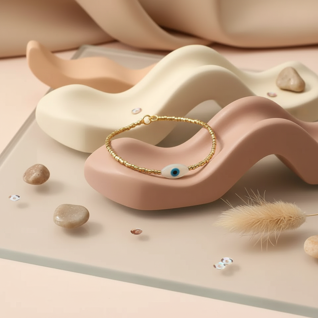 - Materiales de alta calidad: Ojito de madre perla y cristal Miyuki facetado dorado 💫, que no solo te brindan un toque de elegancia, sino que también te ofrecen protección y buena suerte.