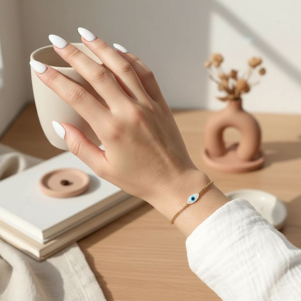 - Un símbolo de protección y buena suerte: El ojo turco, también conocido como "ojo de protección", es un amuleto contra la mala vibra que te hará sentir segura y protegida. ¡Y nosotros lo hicimos aún más especial con el toque mágico de la madre perla y el brillo dorado del cristal Miyuki facetado!